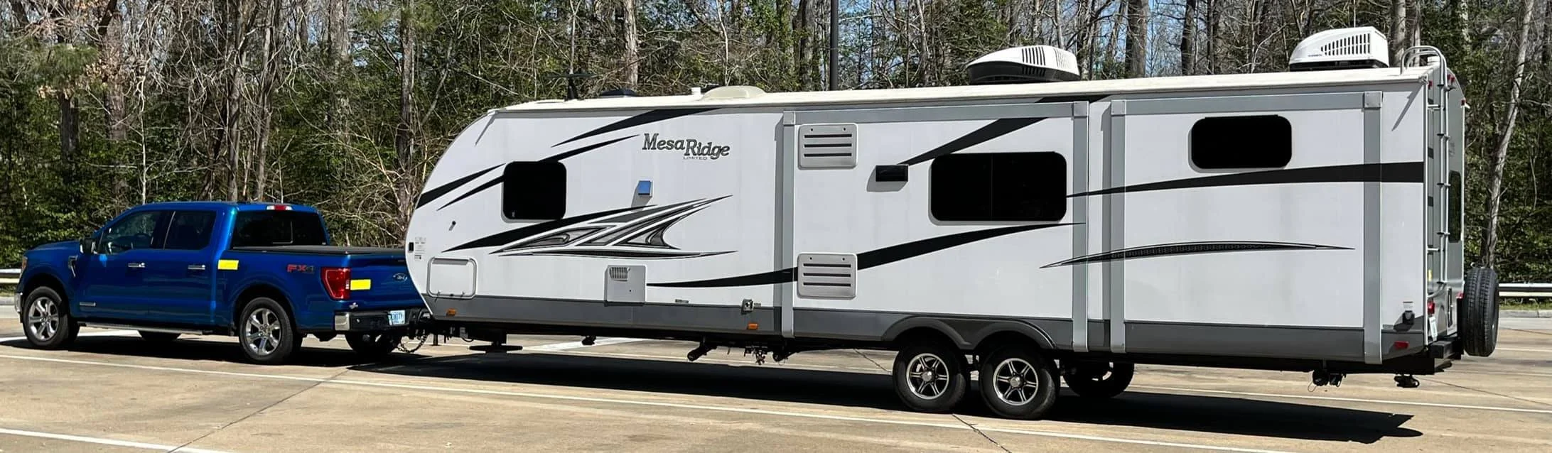 A 2019 37’ Highland Ridge Mesa Ridge 312BHS travel trailer also known as the “Rolling Condo.” With two bedrooms, two kitchens, two showers, and a washer and dryer, it’s hard to even call this glamping. Now joined the fleet in January 2022 after selling the house and is towed by a 2021 Hybrid Ford F-150 with an 11,000 lb towing capacity.