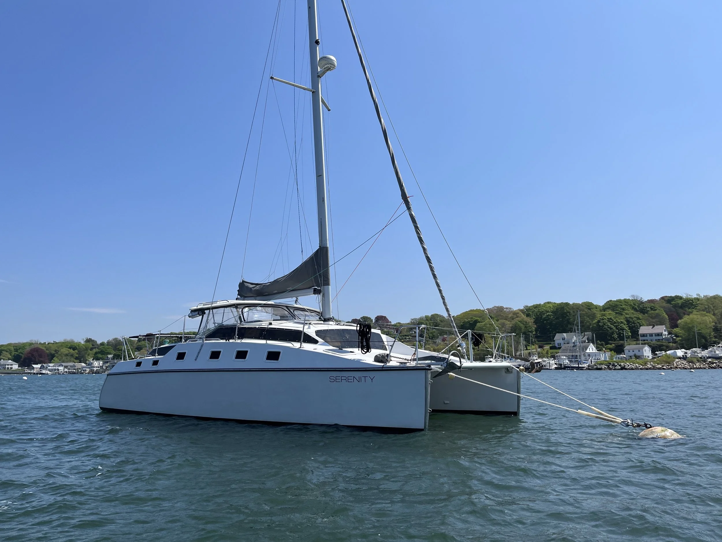 Serenity joined the fleet in June 2017. She is a 1998 PDQ Yachts Altair 32 sailing catamaran. She lived near the Narragansett Bay in Rhode Island until 2023.
